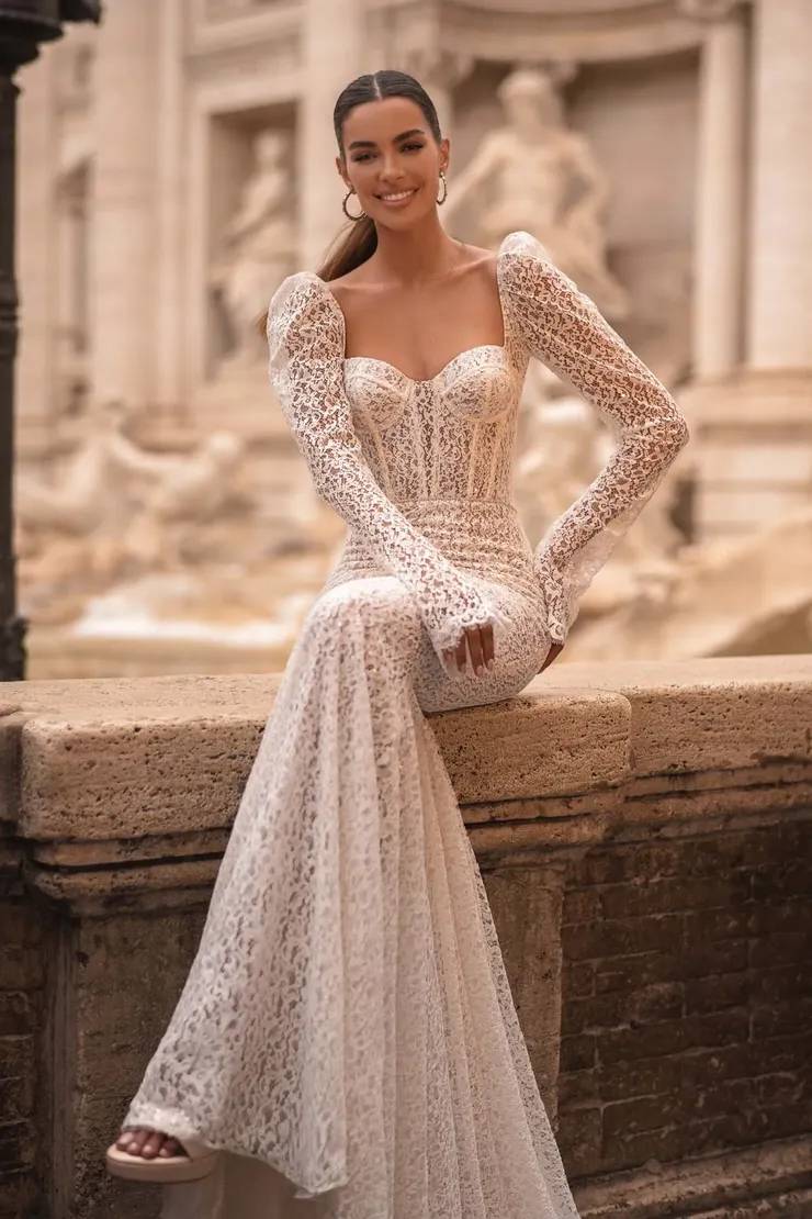 If you’re a bride-to-be shopping for a wedding dress in Southern California or Los Angeles and dreaming of something soft, romantic and full of beautiful detail, lace wedding dresses are always a favorite. This bridal look is perfect for brides who want to feel timeless, feminine and effortlessly elegant on their wedding day. After seeing so many new lace-forward bridal gowns at New York Bridal Fashion Week, we knew this was a trend our Lovella brides would love and we're so excited to share some of our favorite designer romantic wedding gowns that we have at Lovella.
