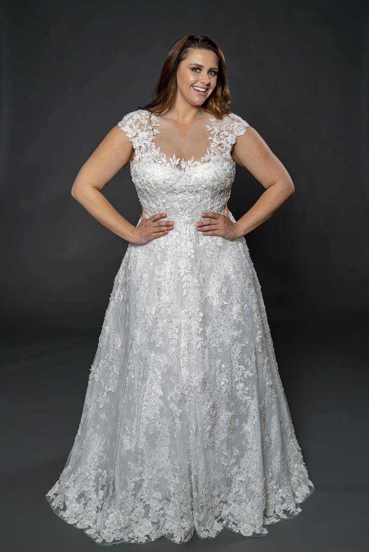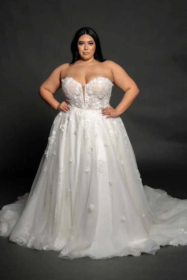 Above Photo Credit: Martina Liana Plus 3D floral and allover sparkling floral lace wedding dress
