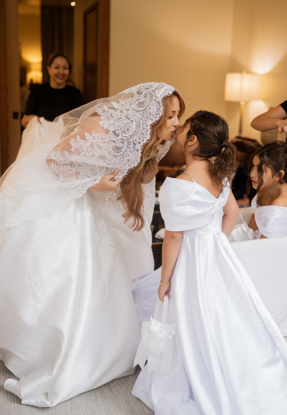 Catherine shared on her @catherinepaiz social media how serendipitous her "yes to the dress" experience was at Lovella. She explained that six months before her wedding, when she first tried on the gown, it was the only inspiration photo she had saved and also the only gown on display at the boutique that day. In her words, “It felt like destiny.” She also expressed her gratitude to her bridal stylist Nayri, Lovella’s Wedding Fashion Expert, saying, “The details. Thank you @weddingfashionexpert for having the perfect dress.”