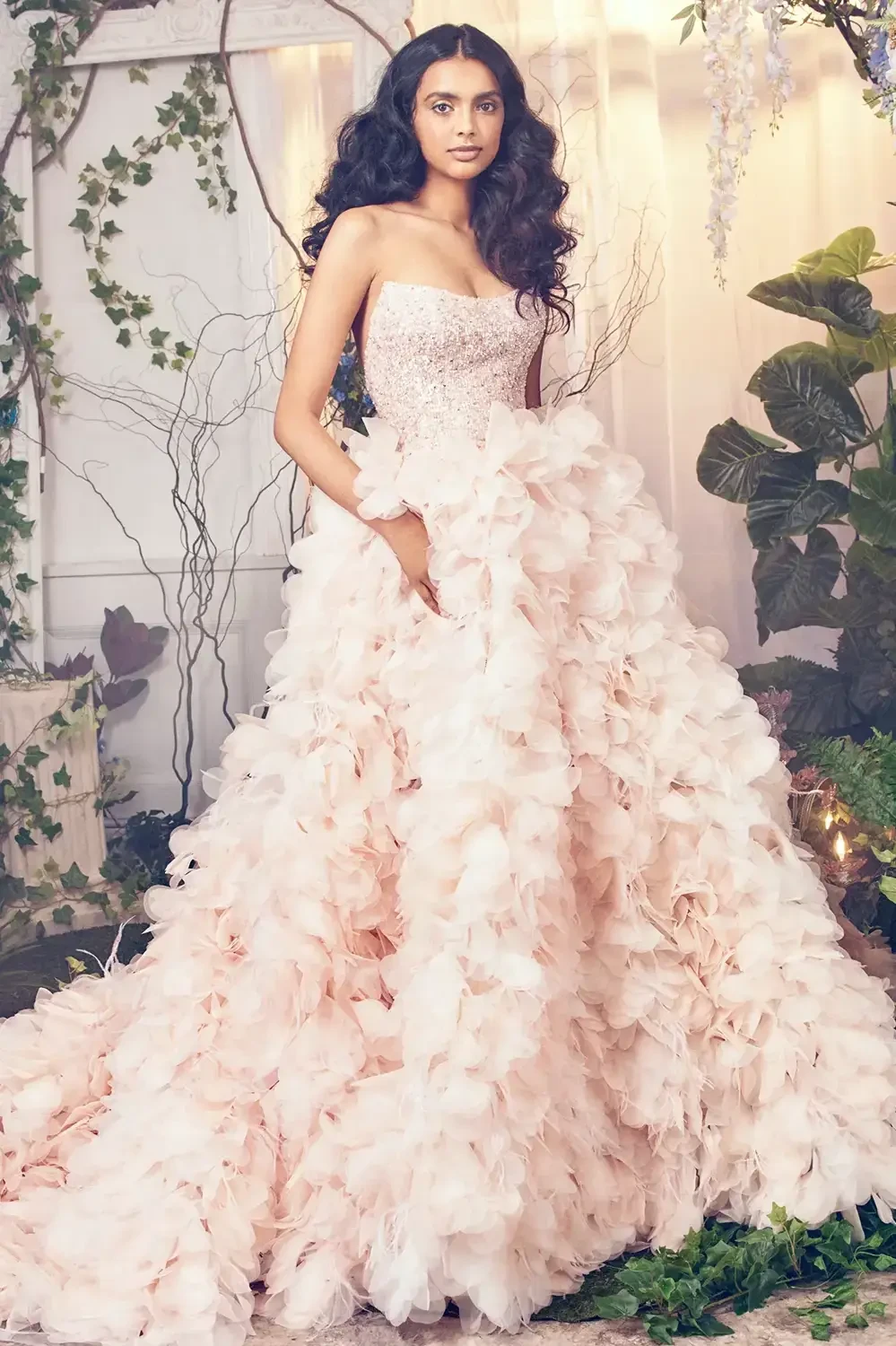 Above dress: blush full skirt wedding dress