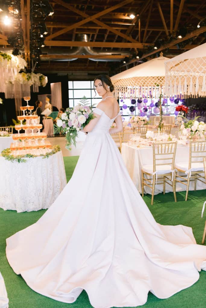 The Southern California chapter of Wedding International Professionals Association (WIPA) hosted a design challenge that evoked the 1920s, 1940s, 1950s, 1970s, 1980s, and 1990s. Luckily for us, our very own Nayri, Wedding Fashion Expert represented Lovella Bridal and styled a Bride! Featured in BizBash, she represented the 1950's and was inspired by the Kennedy Wedding! Gown by Rita Vineries and styled with Maria Elena Accessories! Our very own seamstresses made gathered tulle cuffs as a modern take on the classic gloves Jackie wore! Check out down below Nayri's Design Challenge along with all the other incredible vendors, Captured by Jenny Quicksall Photography at the City Market Social House here in Los Angeles!