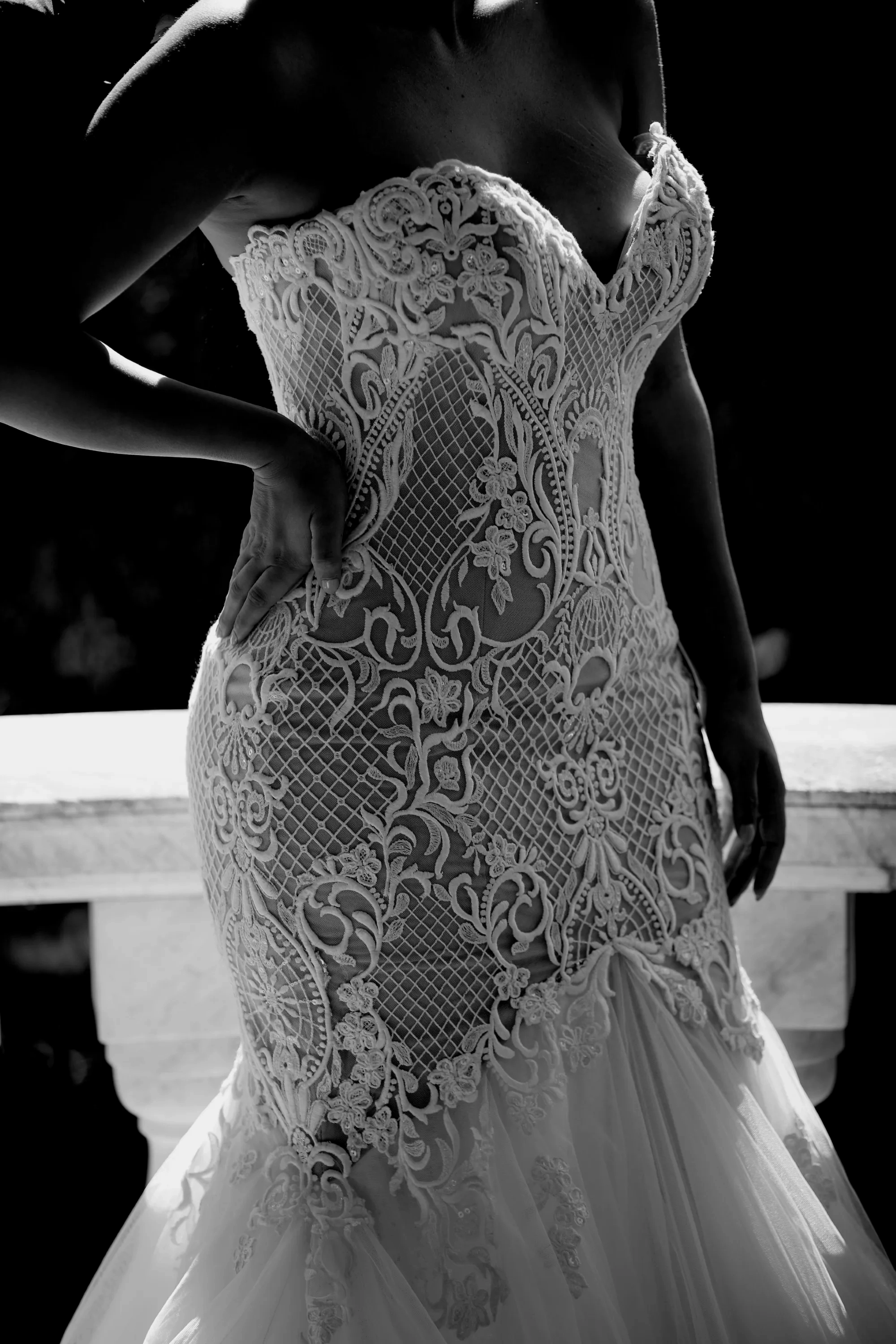 The Leah De Gloria Marlena gown is a breathtaking mermaid silhouette wedding dress that exudes romance and sophistication. Featuring a classic sweetheart neckline, this strapless design highlights the décolletage and shoulders with elegant grace. The intricate lace detailing throughout the bodice and cascading down the fitted skirt creates a luxurious and ethereal aesthetic. The Marlena gown flares out into a dramatic, voluminous skirt, crafted from layers of delicate tulle, adding a touch of fairytale charm. This dress is perfect for the bride who dreams of a glamorous yet timeless look on her special day. Its figure-hugging design accentuates the natural curves before blossoming into a soft, flowing train, making it ideal for both grand ballroom celebrations and intimate garden ceremonies. The exquisite craftsmanship and attention to detail make the Marlena a truly unforgettable bridal statement.